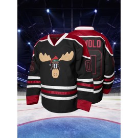 Men'S #3 Embroidery Ice Hockey Jersey, Vintage Stripe V Neck Long Sleeve Uniform Hockey Shirt For Training Competition Festival Party Gift